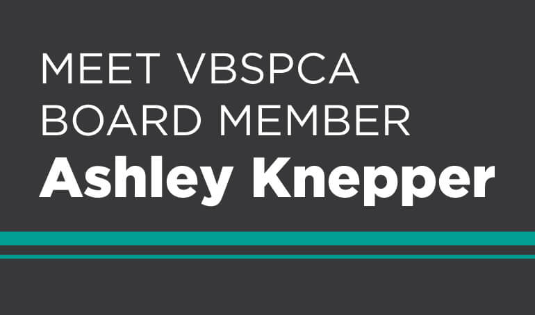 Ashley Knepper first joined the VBSPCA Board of Directors in October 2019. “I was drawn to join the VBSPCA for three primary reasons,” Knepper says. “My love for animals, [CEO] Derby Brackett’s leadership style, and how actively I am able to contribute to the mission in areas where I am most qualified and passionate.”