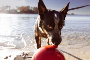 We try to take Bodie with us wherever we go as much as possible to show him everywhere is fun. He adores going to First Landing, where we play fetch and swim. He has almost daily playdates with his little girlfriend Maya, an island dog who lives in our townhome complex. He loves to go to Pups and Pints to get soaking wet standing in the splash pad. I take him to work with me occasionally and he runs around playing with his most prized possession, his Jolly Ball. He loves the car and tries to get in whenever we so much as walk by it.