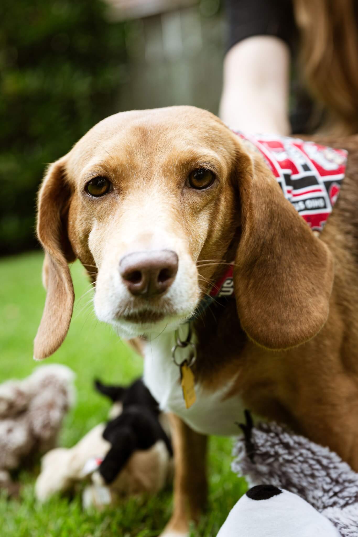 Every single animal that comes through our shelter has a story. Some are complex, many are sad, but all of them get better the minute they arrive at the Virginia Beach SPCA. Churro came to the VBSPCA in December 2020 in need of medical attention and a second chance. The six year old Beagle mix hadn’t had the best care – she was heartworm positive from living outdoors and suffering from an inguinal hernia. Churro’s luck began to change when she walked through our doors, and her happily ever after came when she met Heather at the end of February 2021. We recently caught up with Heather to talk about the rest of Churro’s adoption story.