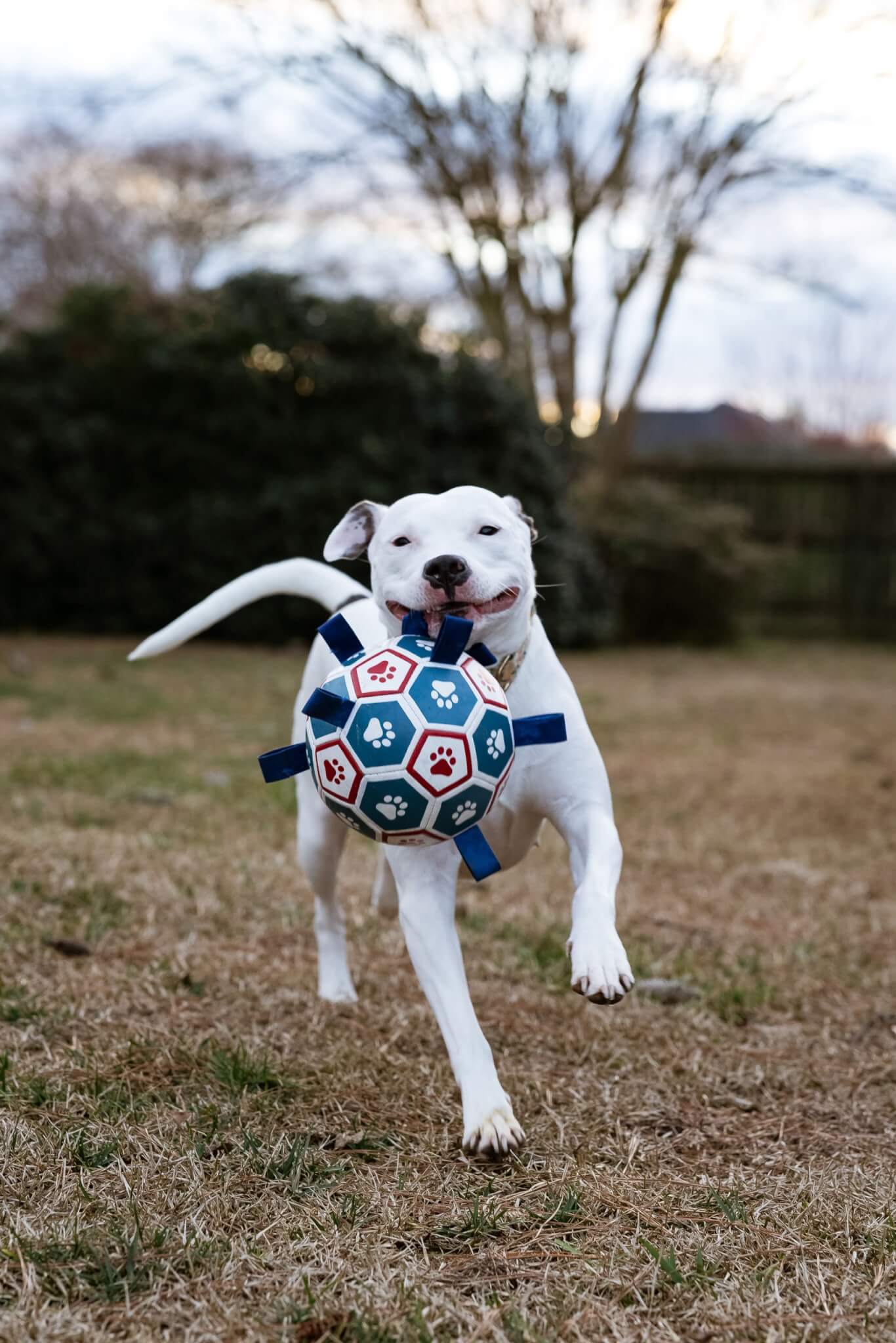 Savannah continues to play ball in her big back yard – her favorite being her soccer ball, which tracks seeing as her dad played soccer in college. She also loves her squeaky balls but finds they serve no purpose after she has successfully retrieved the squeaker. Savannah also loves to go on walks around the neighborhood and curl up by the fireplace, but she always makes time to remind the Amazon drivers whose turf this is.