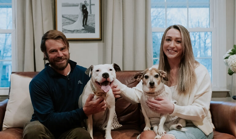 Once Savannah’s puppies were healthy and strong, they were quickly adopted. Unfortunately, Savannah had to wait longer for her second chance. That opportunity came when she met a woman named Colleen at the VBSPCA Wags and Whiskers Gala in April 2023. We recently caught up with Colleen and her husband, Ben, to hear about how Savannah finally found a home of her own.