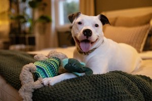 Savannah loves to show off her new toys to anyone who comes for a visit. She also quickly learned to let herself out the back storm door (when unlocked) to use the bathroom and chase squirrels in her backyard.