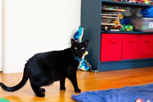 We were originally looking for a kitten. We have a rambunctious 2 year old boy and thought it would be easier for a kitten to get used to our loud household. After looking around at different shelters, we really couldn’t find any kittens or they would be snatched up so quickly we couldn’t get there in time. I finally started asking shelters if they had any family friendly cats or cats who tolerated kids. When I got to the VBSPCA, I asked and they pointed me immediately to Shadow, saying he was very affectionate with kids. I visited him and fell in love with him. All he wanted to do was rub and love on me. Even when I tried to play with him, he would just rub his head all over my hand. He is still the most affectionate cat I have ever met.